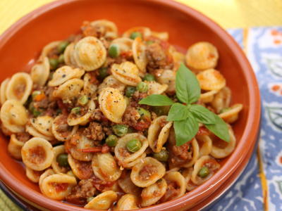 Pasta With Spice Infused Ground Lamb And Green Peas